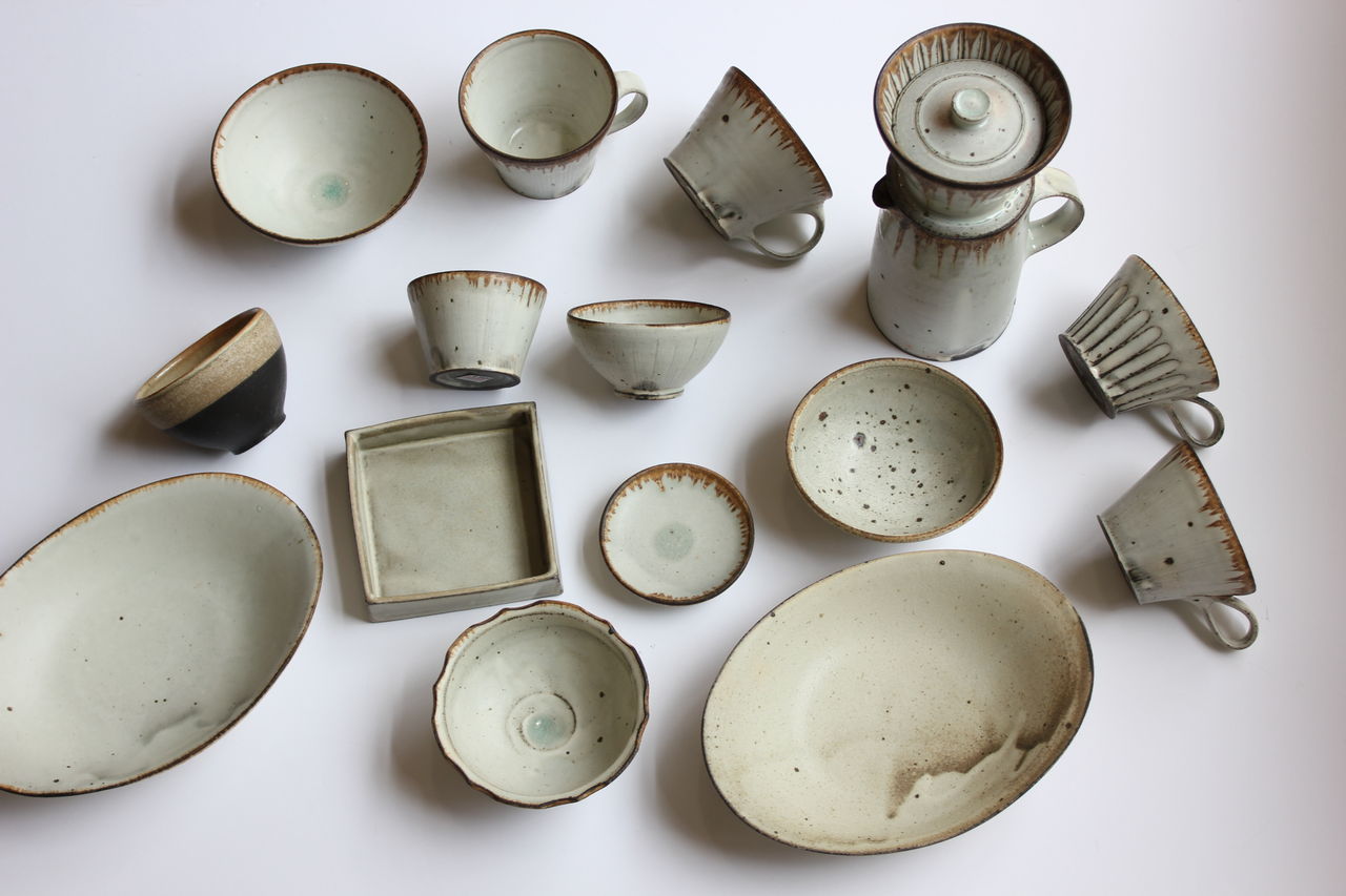 灰釉・炭化・粉引といろいろとやっています。