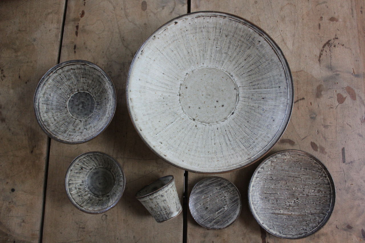 線紋灰白釉5寸皿 2500円