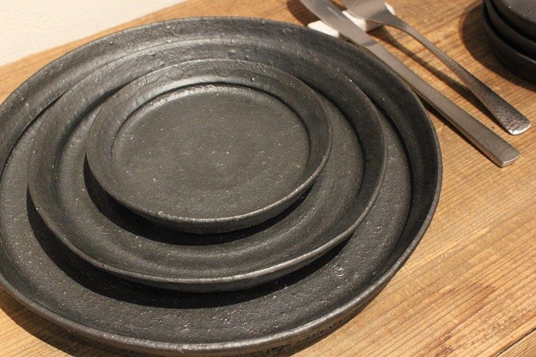 定番の加藤芳夫さんの黒釉プレートです。