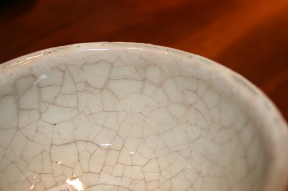 巌さんの器のような特徴をもつものには、貫入にそってシミが入ってくる