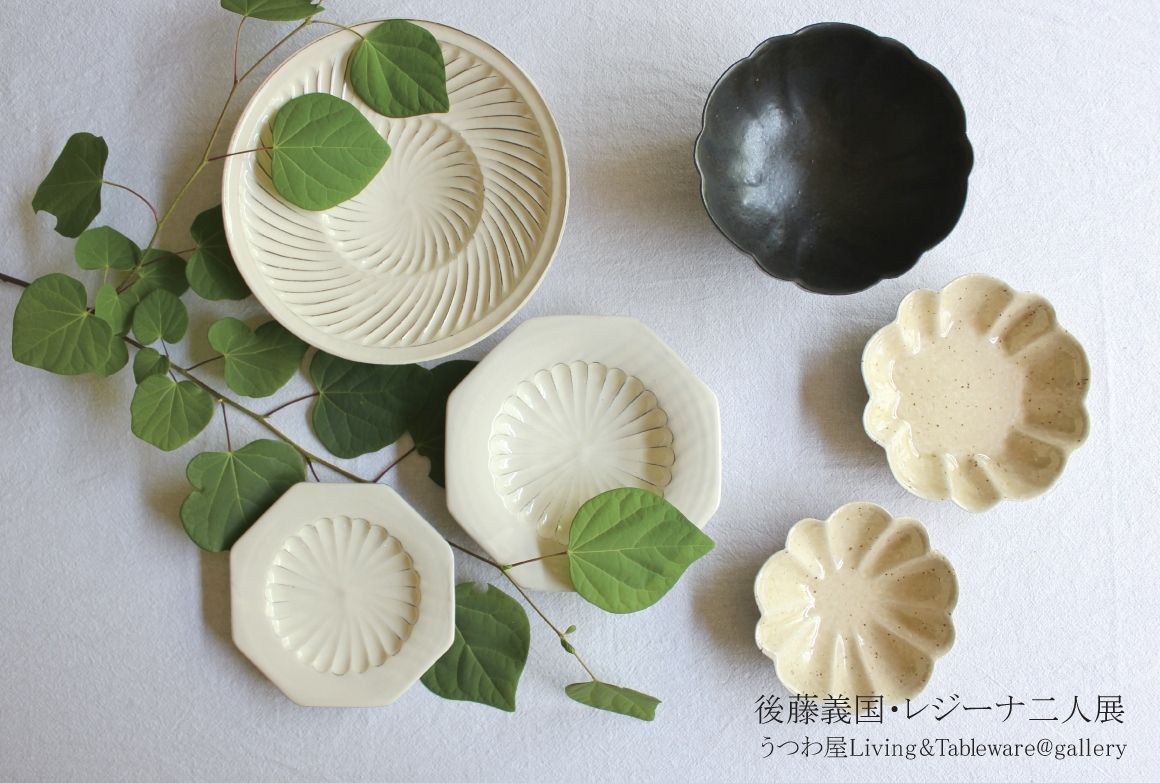 陶磁器陣はガラスに負けず劣らず爽やかな若手4人の作家にお願いしました。各々個性的なテイストですが現代的で「さらり」とした軽やかさを感じる素敵な器ばかりでウキウキさせられます。