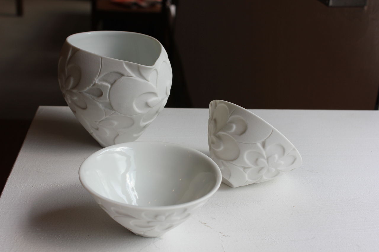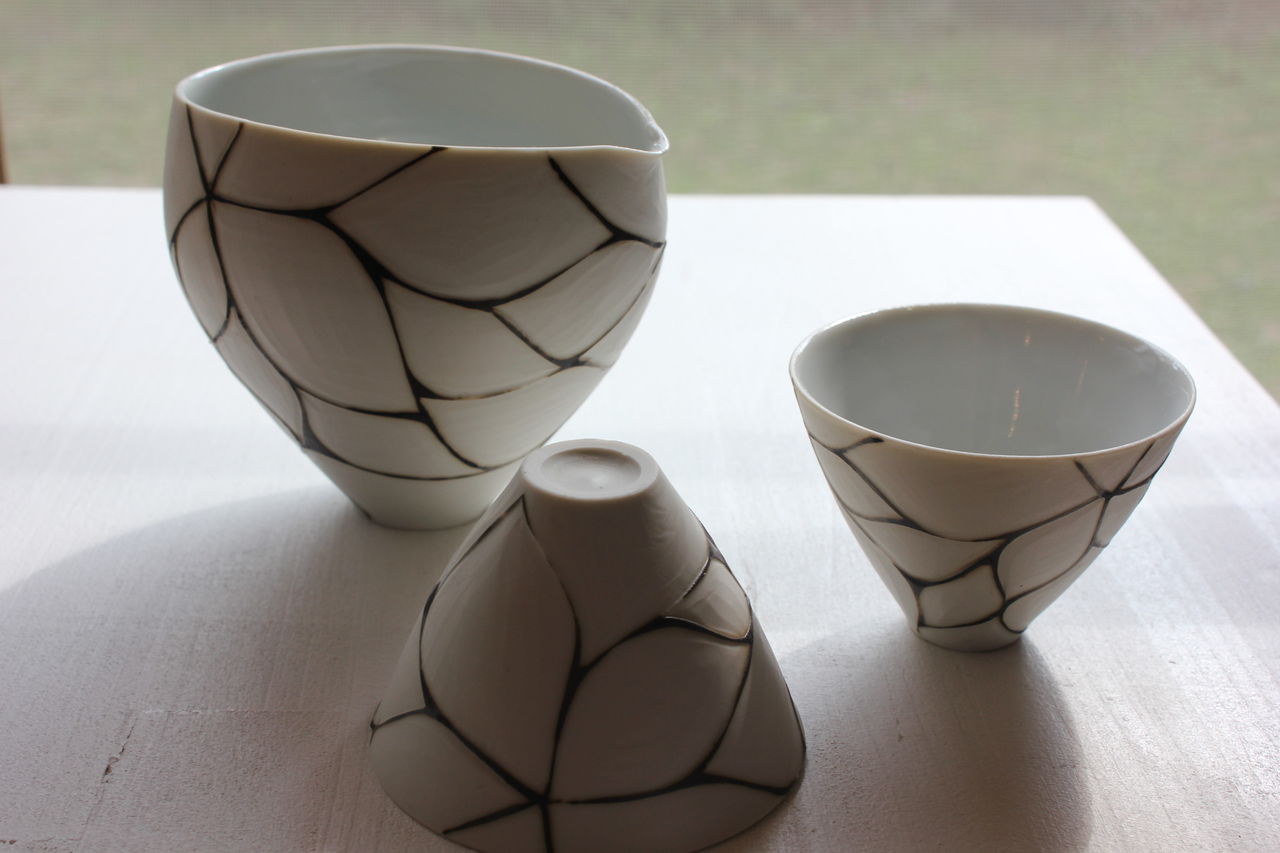 繊細なラインどりの轆轤で成形された磁器を、