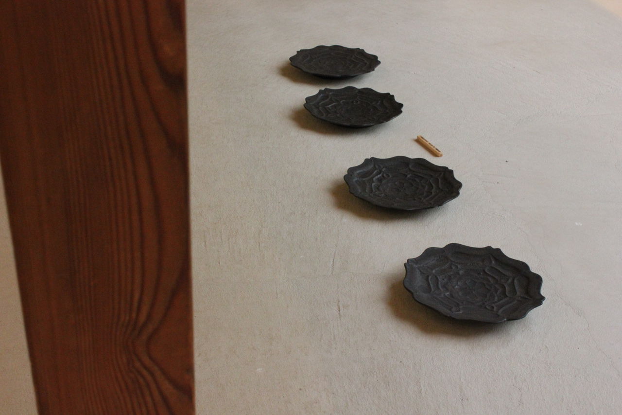 鐡で出来た作品に800℃の低温で焼き付ける柔らかな印象の銀彩が特徴。