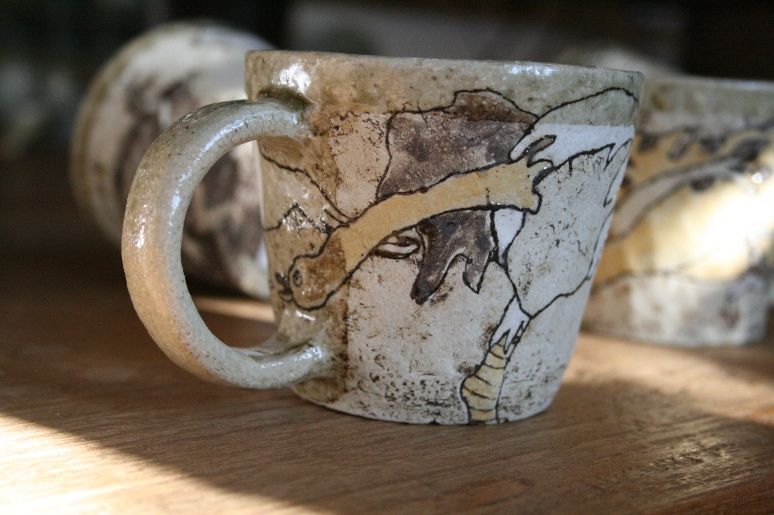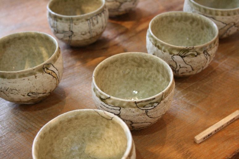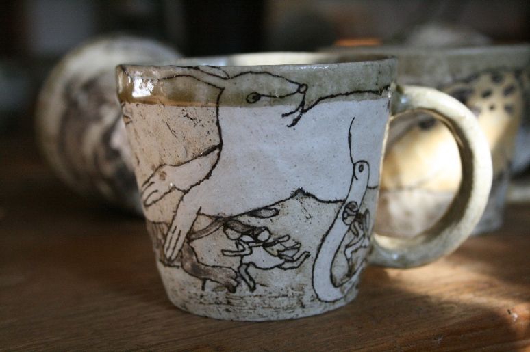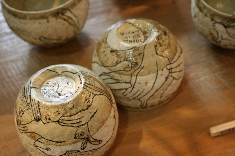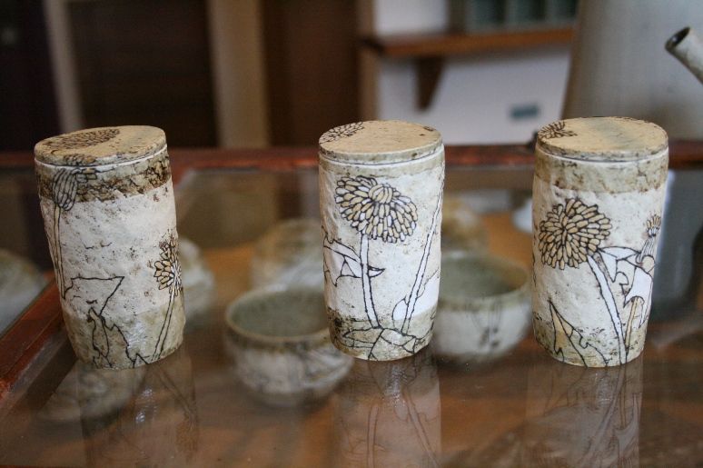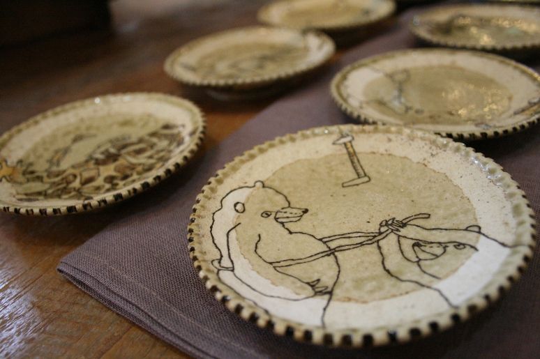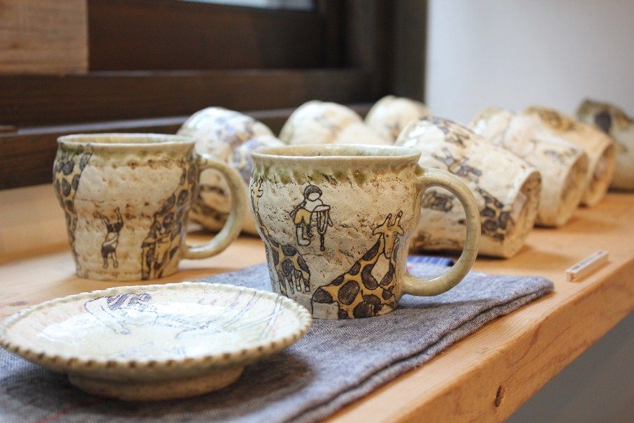 手びねりでの形作りはとっても機能的。そこに施される絵はかわいくてちょっぴりシュール。