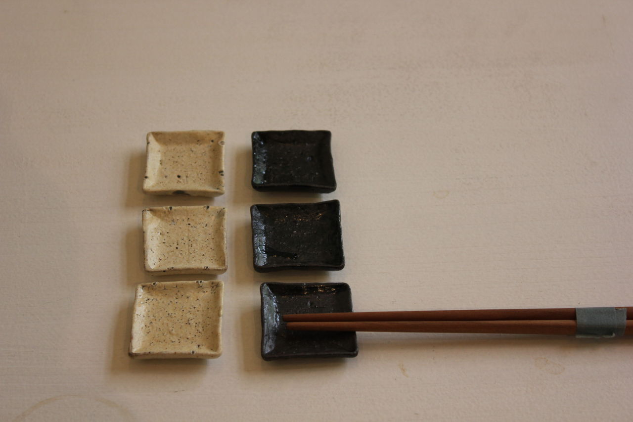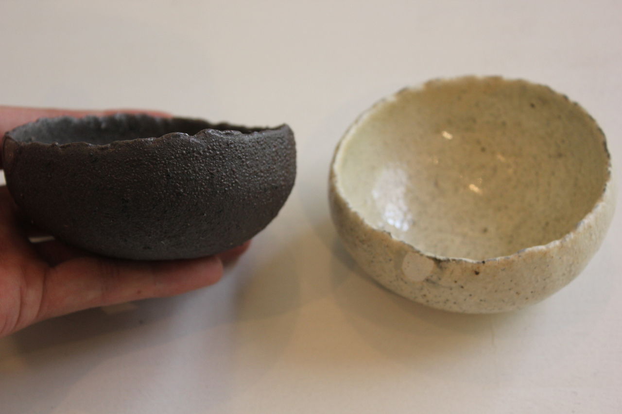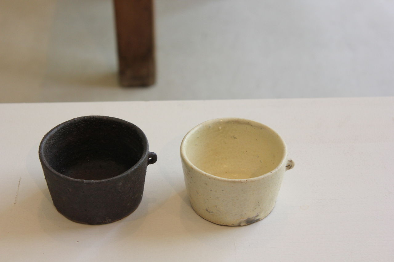 粉引と黒釉の2種類のマットでプリミティブな質感。