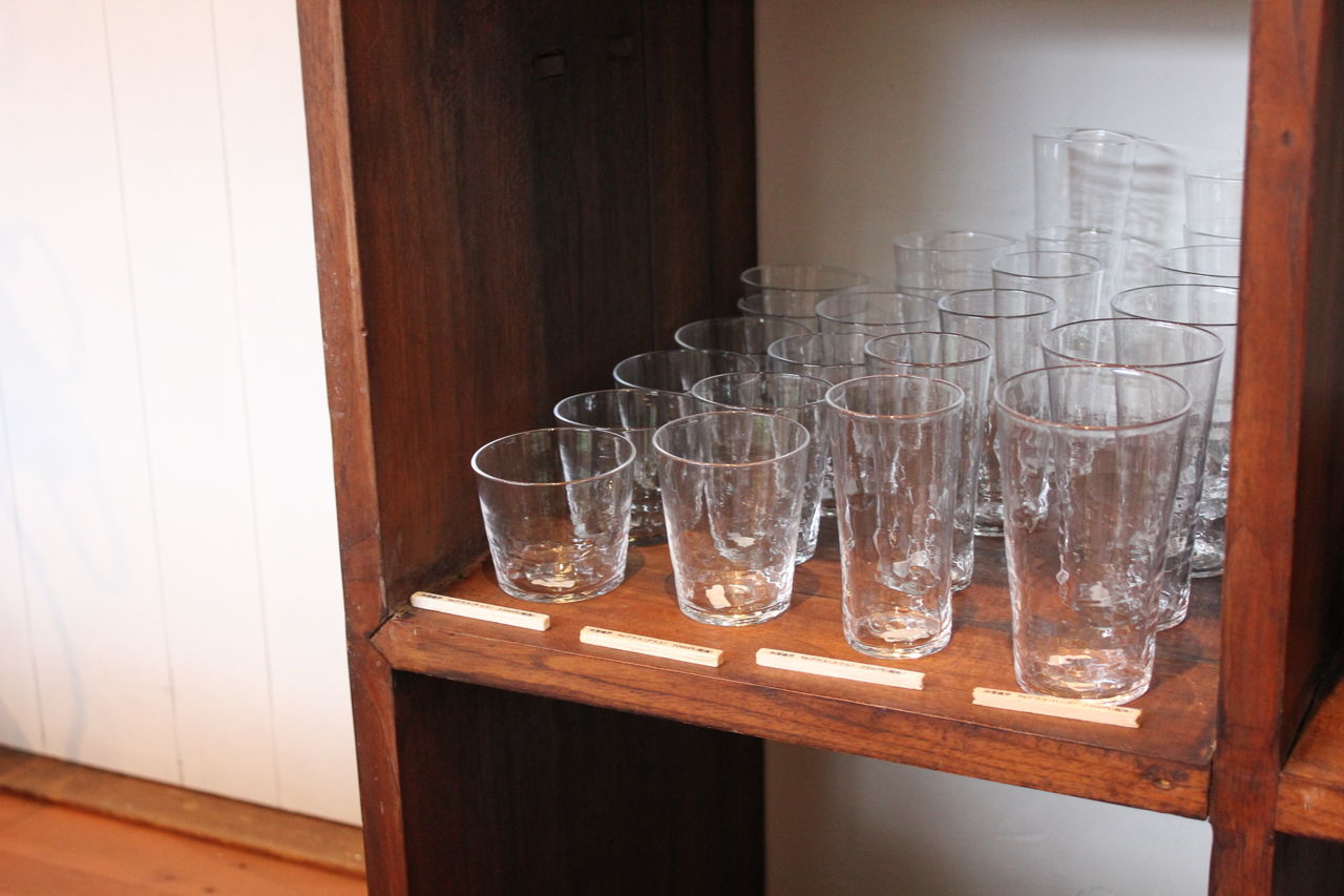 透明なガラスは透光性は唯一無二。それゆえ軽やかで、お漬物やサラダなどとアクセントに最適!またお酒やお茶など液体を美味しく見せるスペシャリストでもあります!特に沖澤さんの作るガラスは、ノーマルかつカジュアルを基本としながらも今を感じるスタイルが人気の秘訣です!
