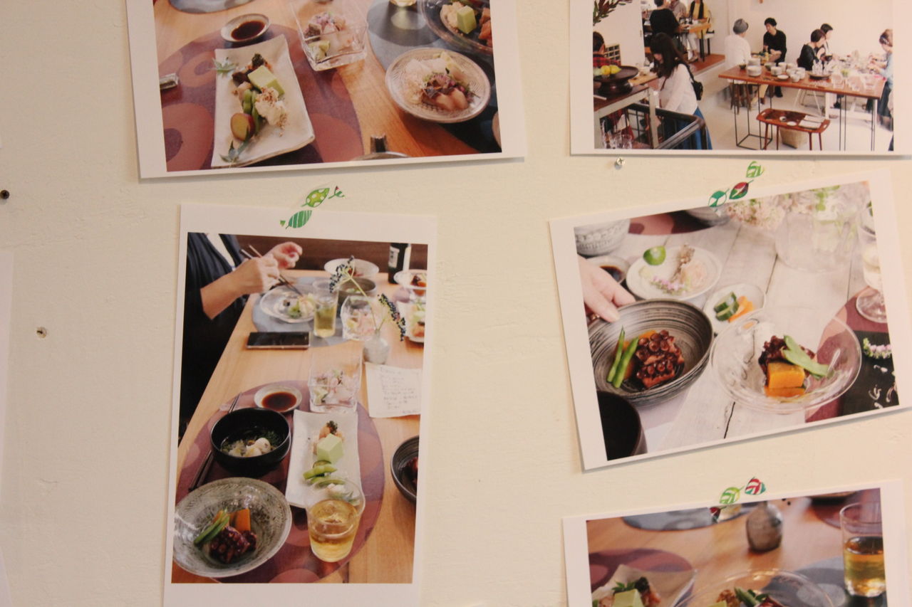 2日目に行った幸福論さんによるコラボランチ会の様子の写真を壁に貼っています。
