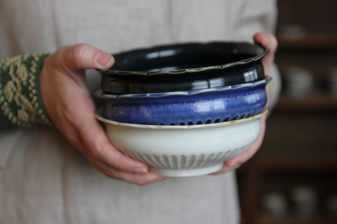 鎬稜花リム鉢(3色) 小1800円 中2800円