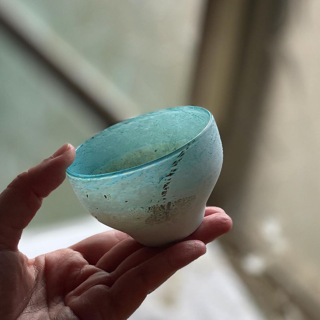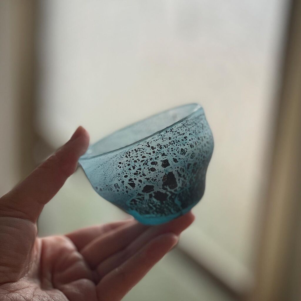 さてさて、galleryにて開催中のglass works plus+「ガラスと陶と」から本日ピックアップにてご紹介するのは兒島佳祐さんのぐい呑です🍶