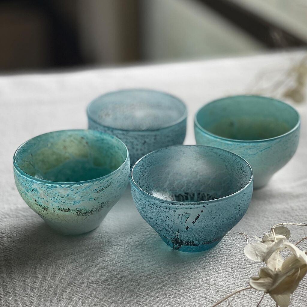 すりガラスのようになった表面は、お酒が入ると少ーしだけ透明感が増してそれがまた素敵なんです😍