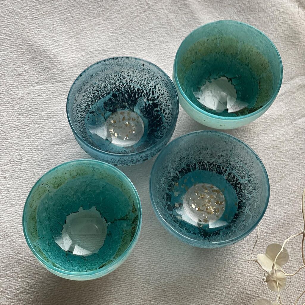 マーブルのように流れた色がガラスと混ざりあって綺麗です✨