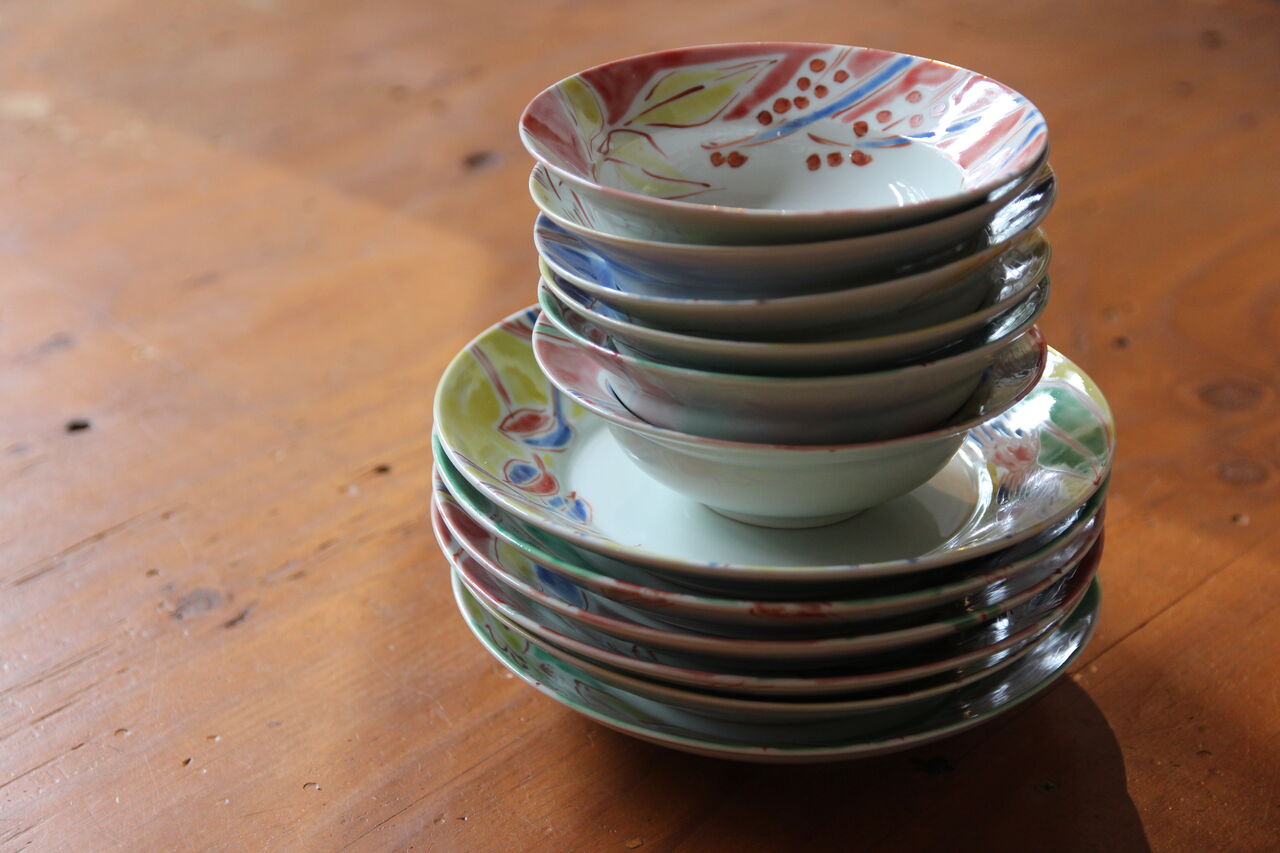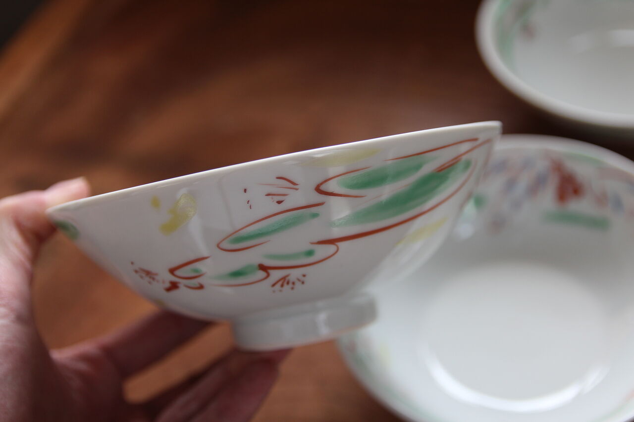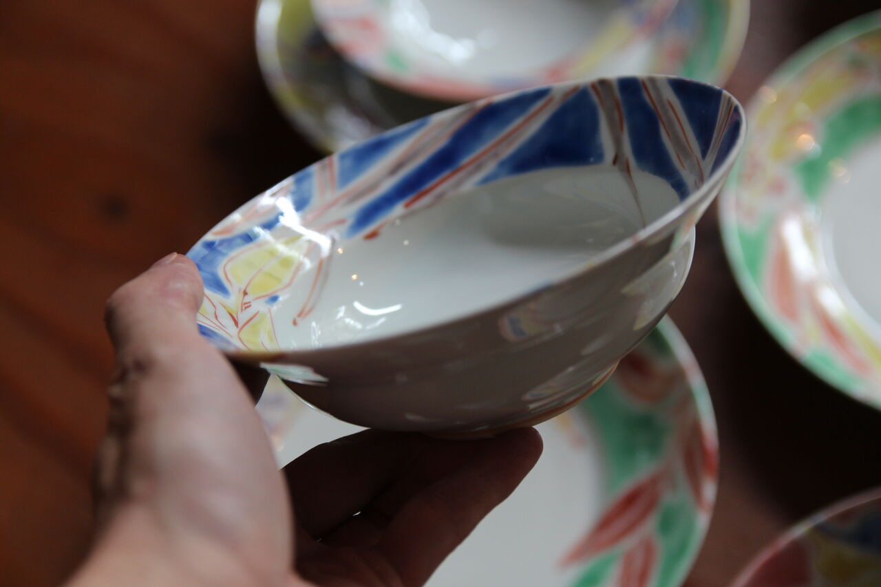 手書きの上絵らしい質感の高さが食を引き立てます。さすが古川桜さん。