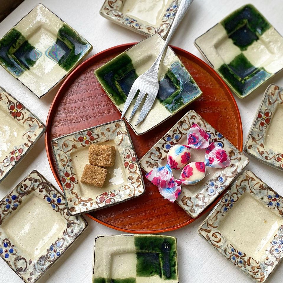 日比野さんの角豆皿は土もの柔らかさと手仕事の雰囲気抜群。