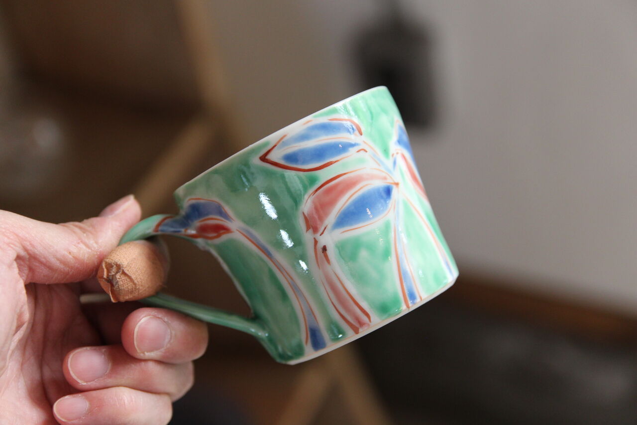 手描きで描かれる自由闊達なその絵付けが魅力いっぱいの古川作品。