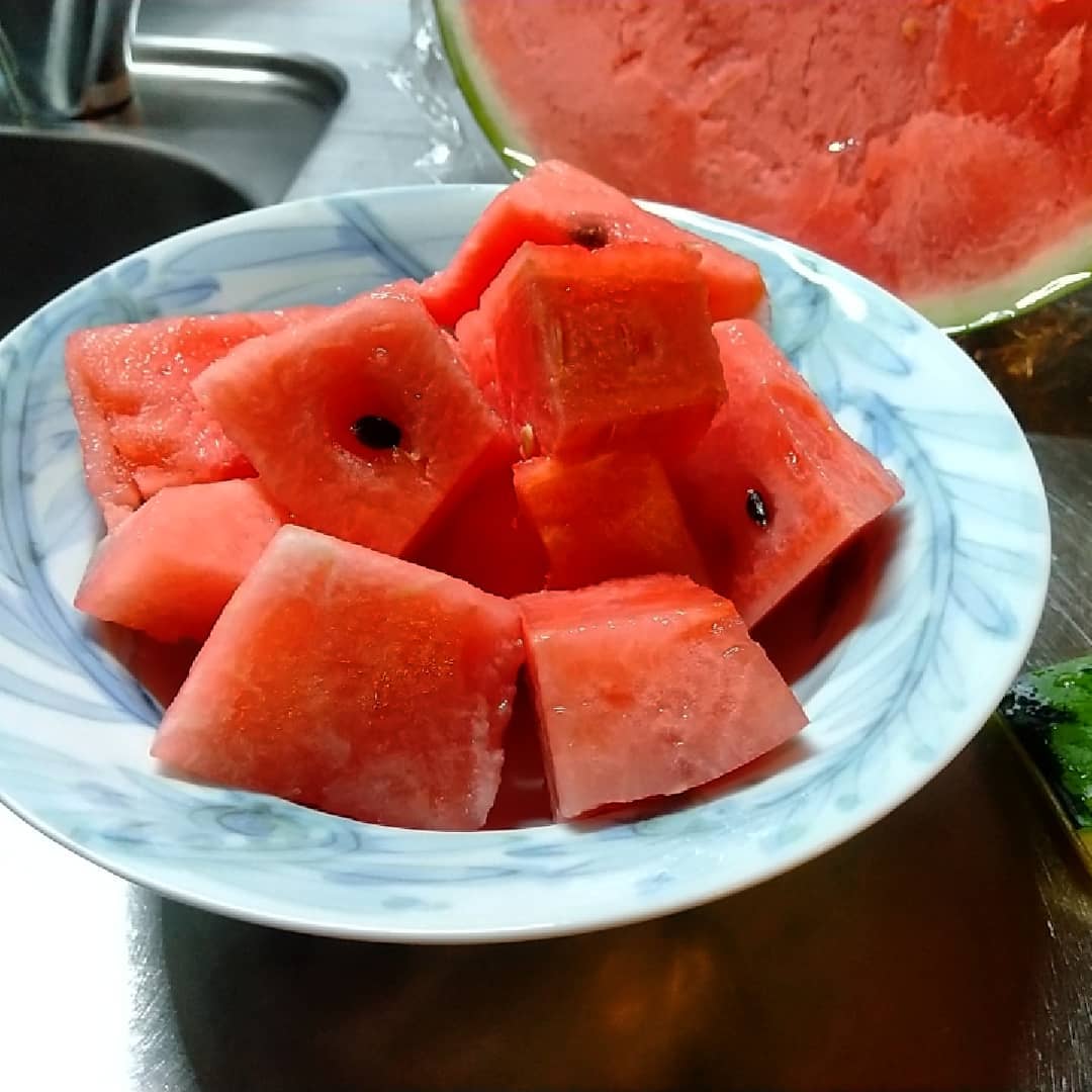 (写真はシダ文ロウボウルにカレーとスイカとカジュアルづくし)。