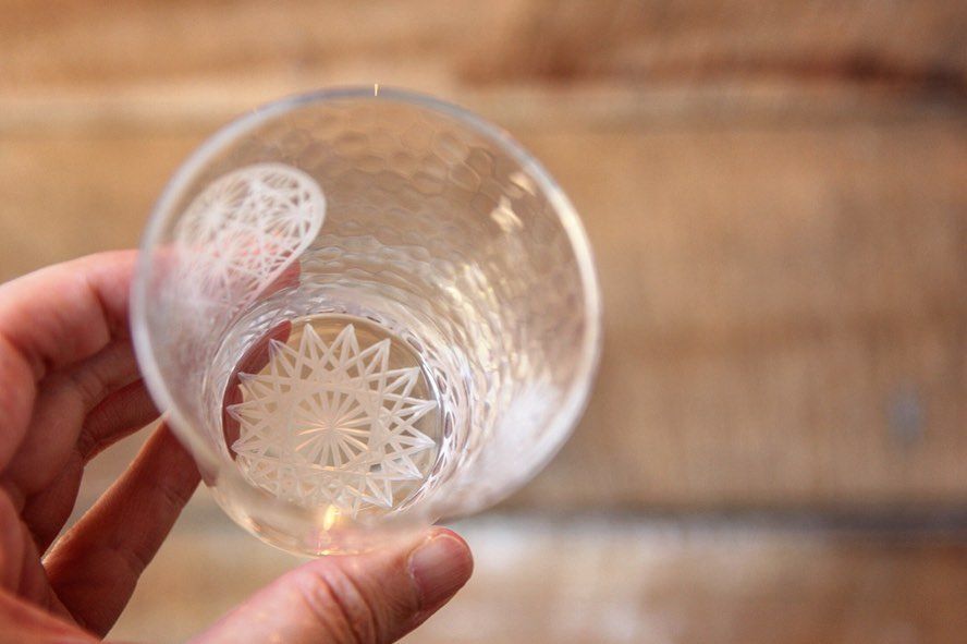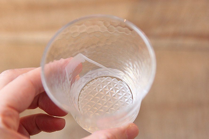 面取りのカップは内側がキラキラしていて、お酒や氷が入るととても映えます!