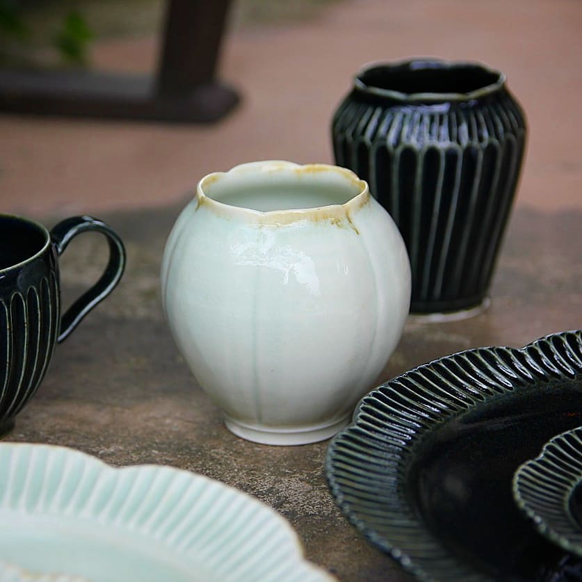蹴ろくろから生み出される伸びやかなシルエット、藁灰釉・糠釉などを用いた奥行きのある肌がとても素敵です!