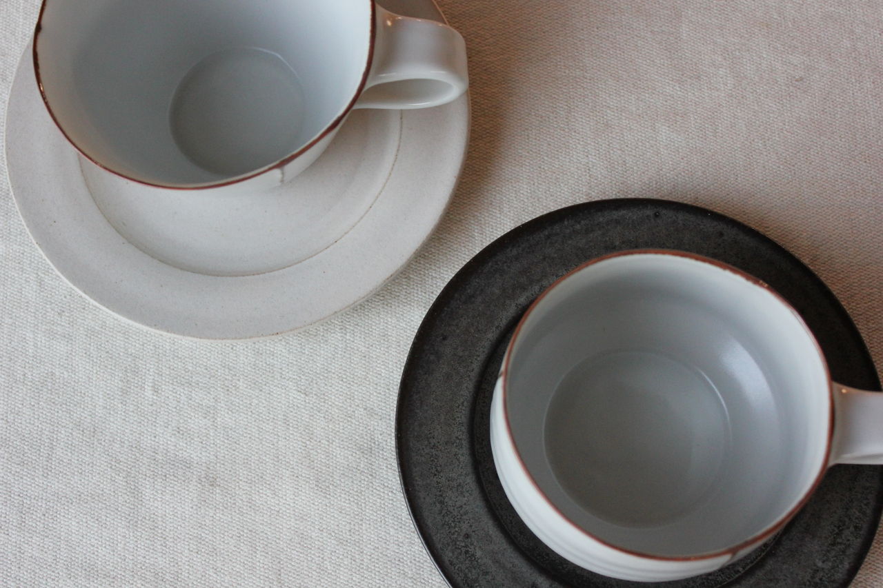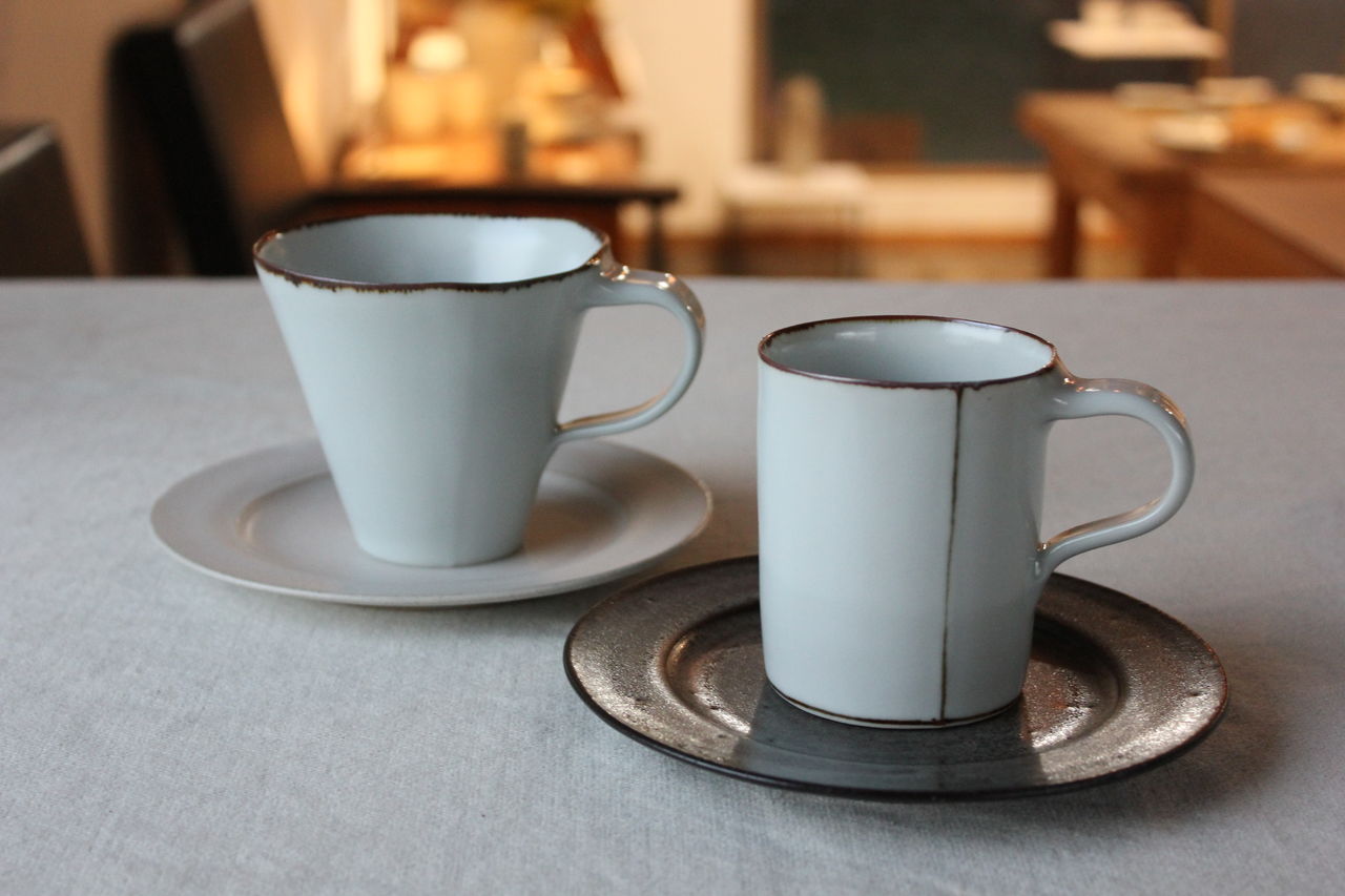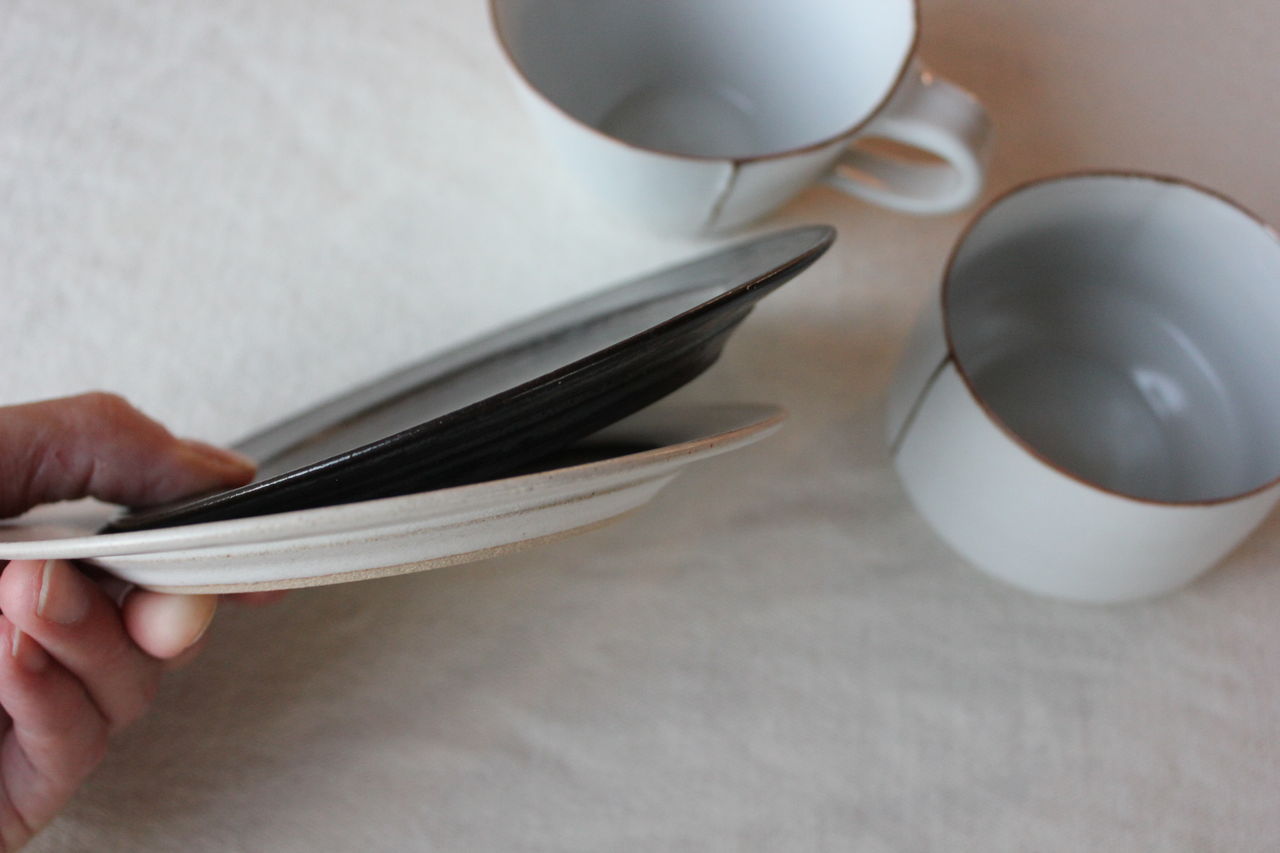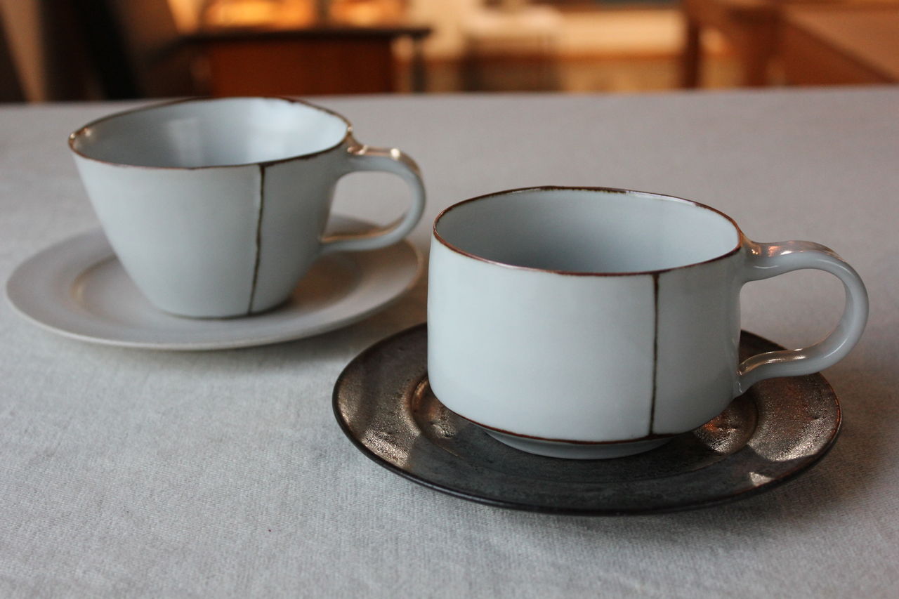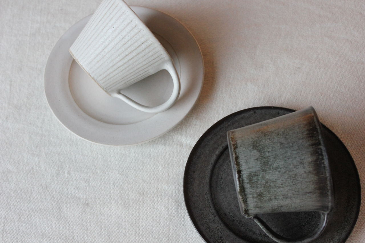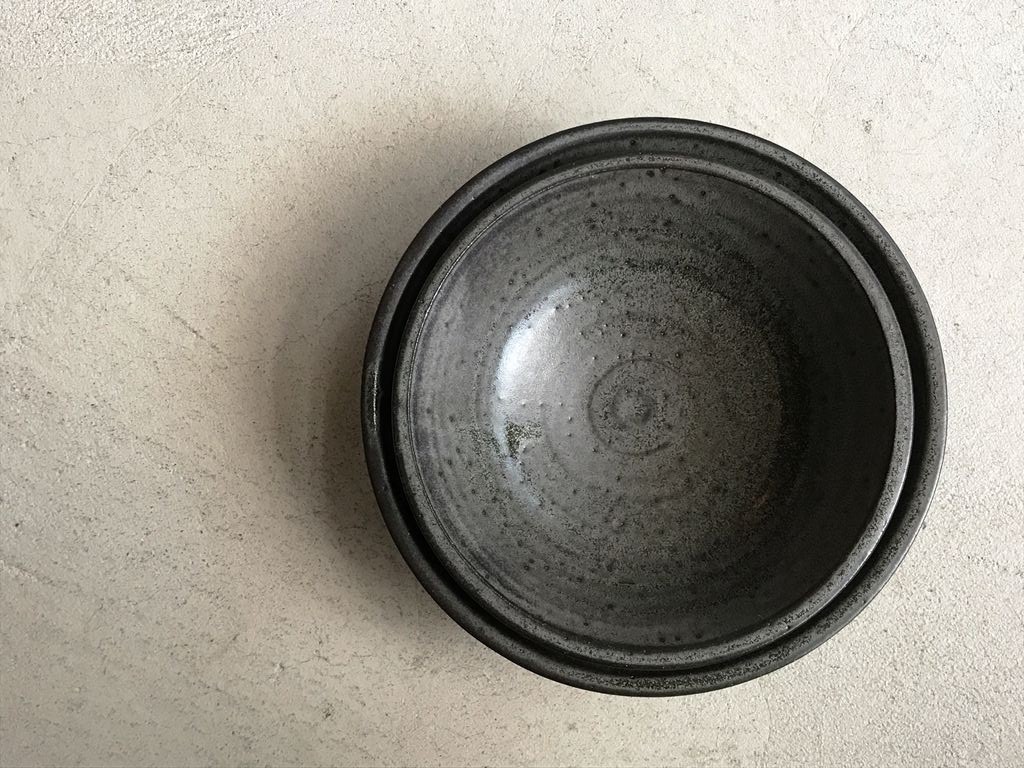 BBと名付けられたブルーブラックの釉薬に線彫りがほどこしてあり、陰影で柄が浮かび上がって見える器たち。いつも人気の形にももちろん搭乗しております!マグの大小はソーサーに合わせてもぴったり。合わせてご購入される方も多いです。飯碗はこの深い色がお米の白と艶を引き立ててくれます。そばちょこは和のフリーカップ。コーヒーにも小鉢にもデザートカップにも・・とイメージふくらみます。スタッキングもきれいにできますので、お客様用に数揃えされる方も多いアイテムです。