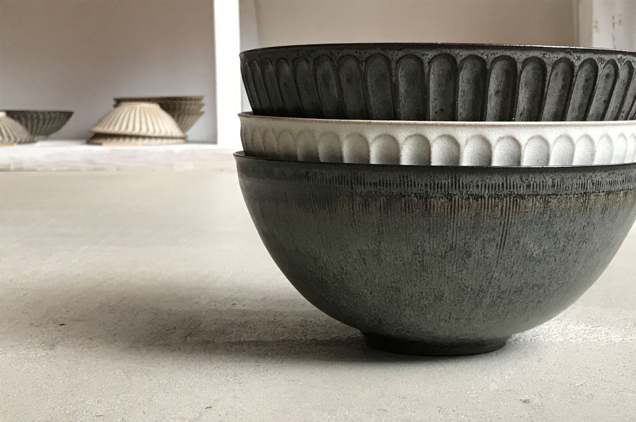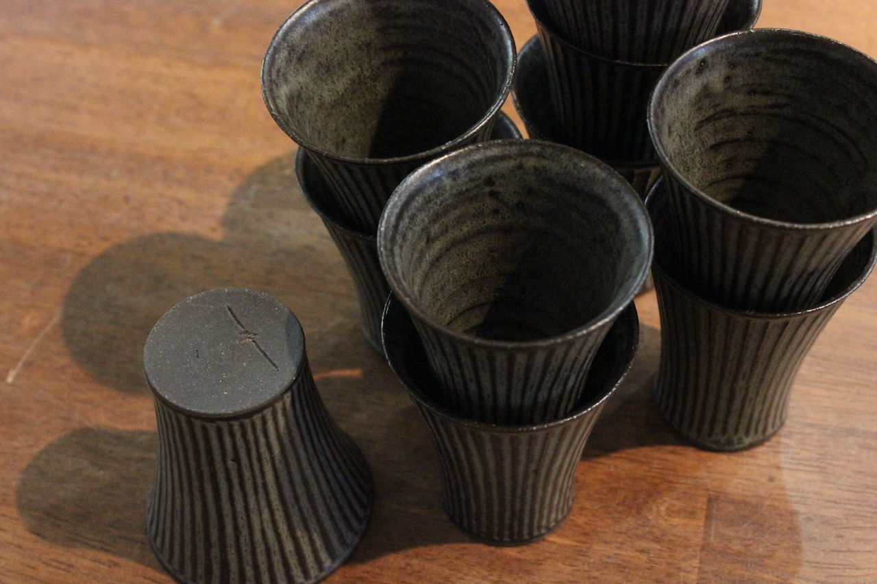 本日は北岡さんの線紋シリーズの立ちもの(カップなどの立ち上がったもの)と、今回の個展で北岡さんイチオシの「切り立ち鉢」のご紹介です。