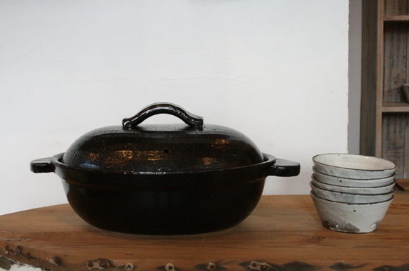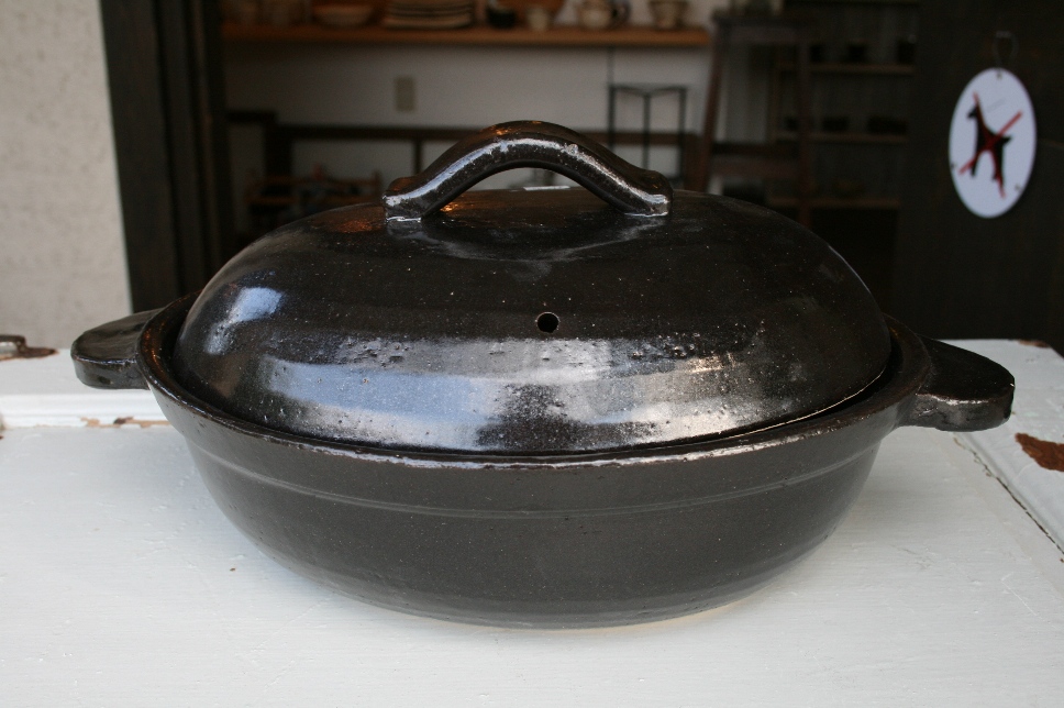 ■黒釉楕円 土鍋
