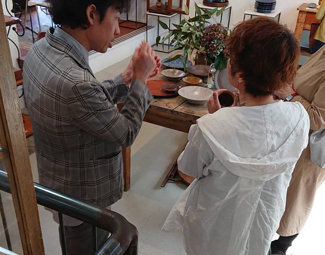 前震から昨日で3年、前回の小澤さんの熊本まどZAKKAさんでの個展からも3年、一時は震災のショックで器は怖くて買いたくない、という方もたくさんいらっしゃいました。