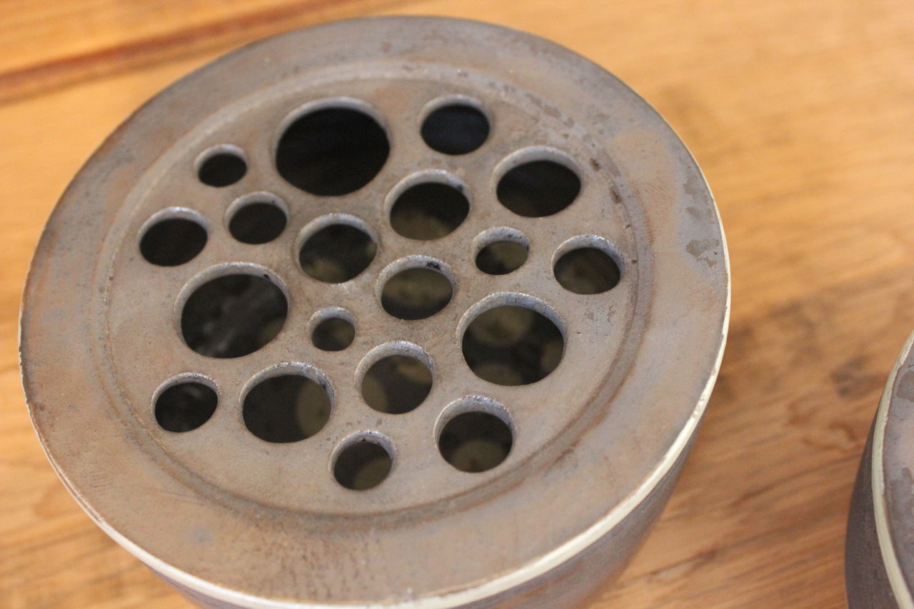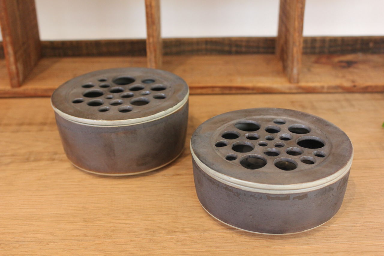 灰皿、花器に。蓋は取れます。レンコン、蓮をイメージ。縁には雲母銀を上絵焼成してある作品。