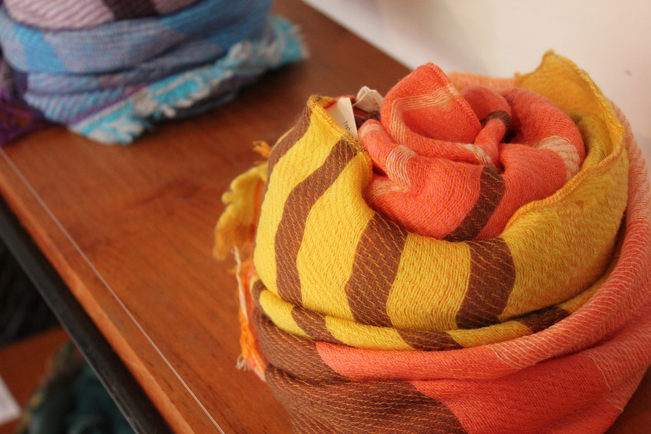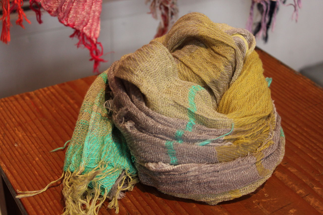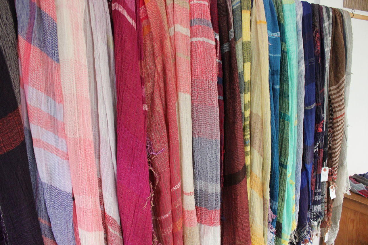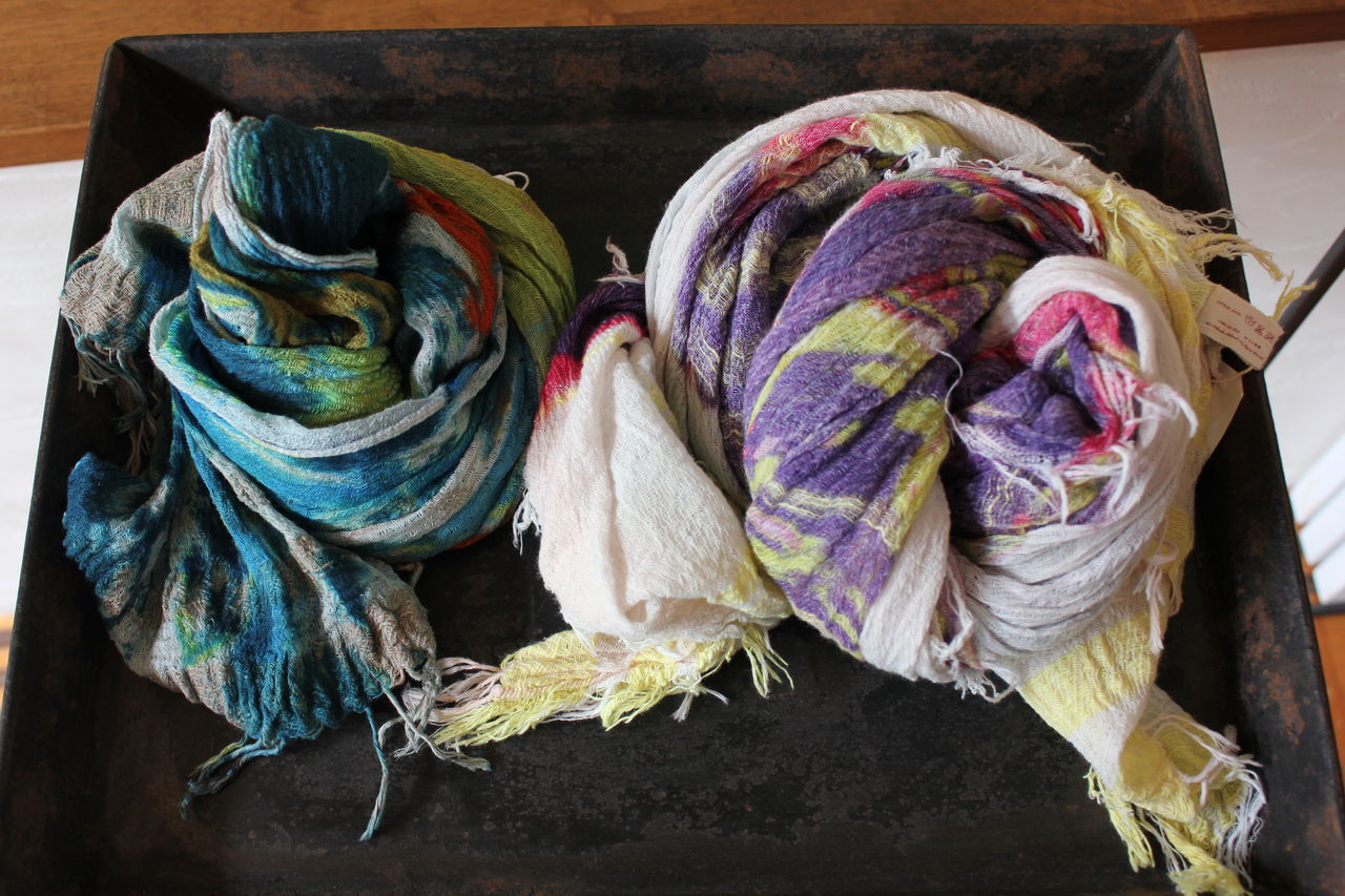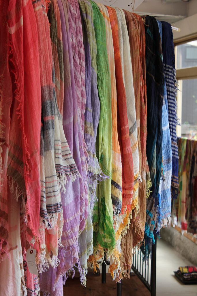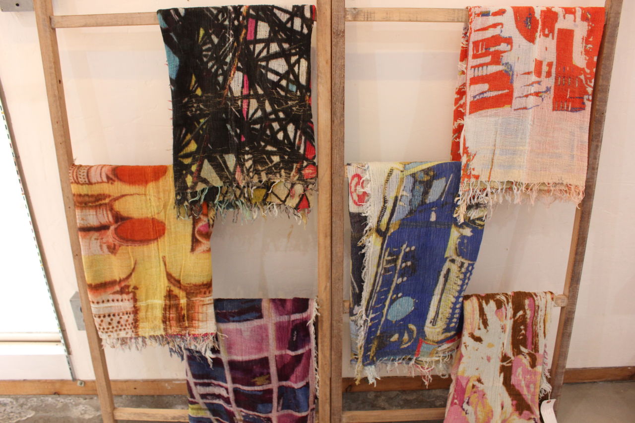 たくさんのバリエーションを見ていただきたくて大量に選んできましたが、見やすくディスプレイするのに一苦労。でも一点一点が素敵なので、ショールの良い香りに包まれつつ楽しんで準備することができました。