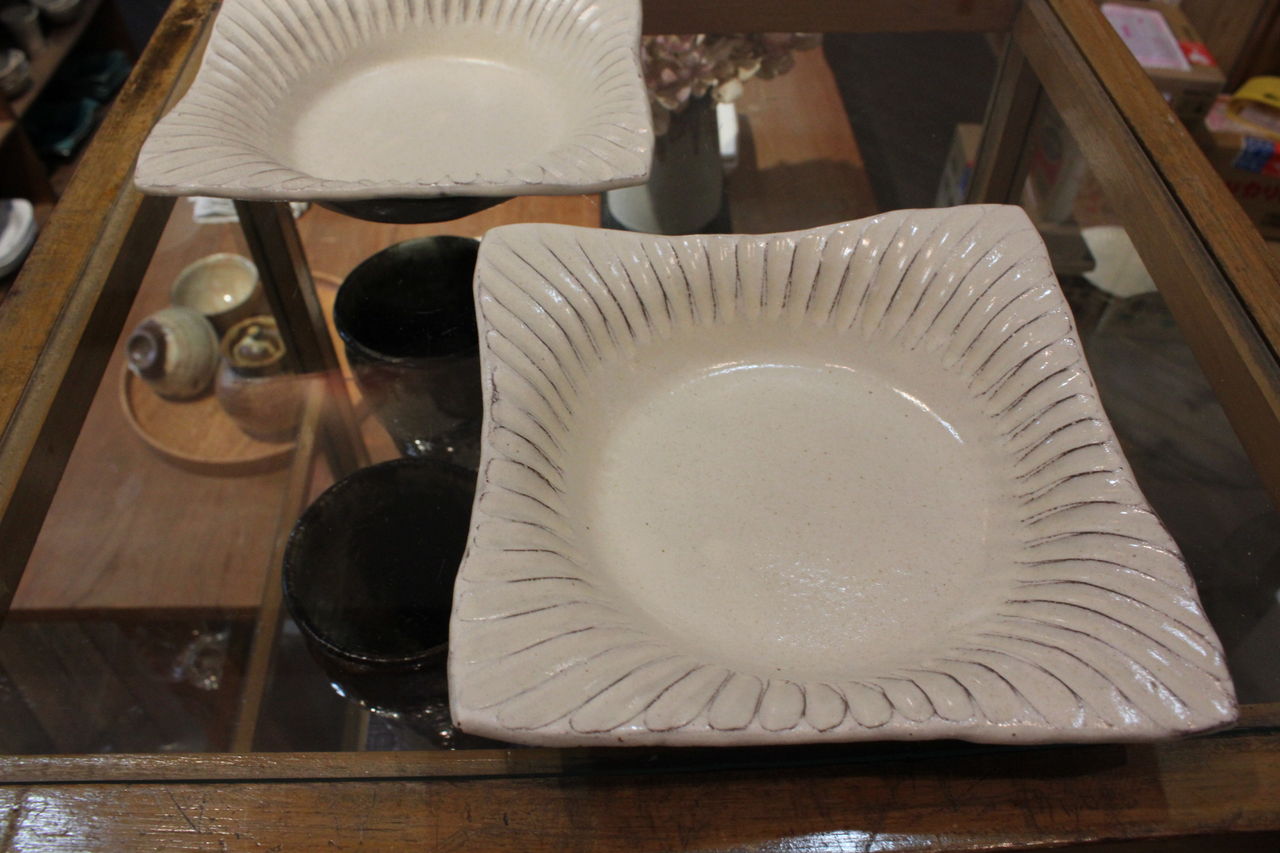 粉引しのぎ正角皿 3150円(Φ16h4)へこんだ部分に盛りつければ簡単プロの技気分です!!