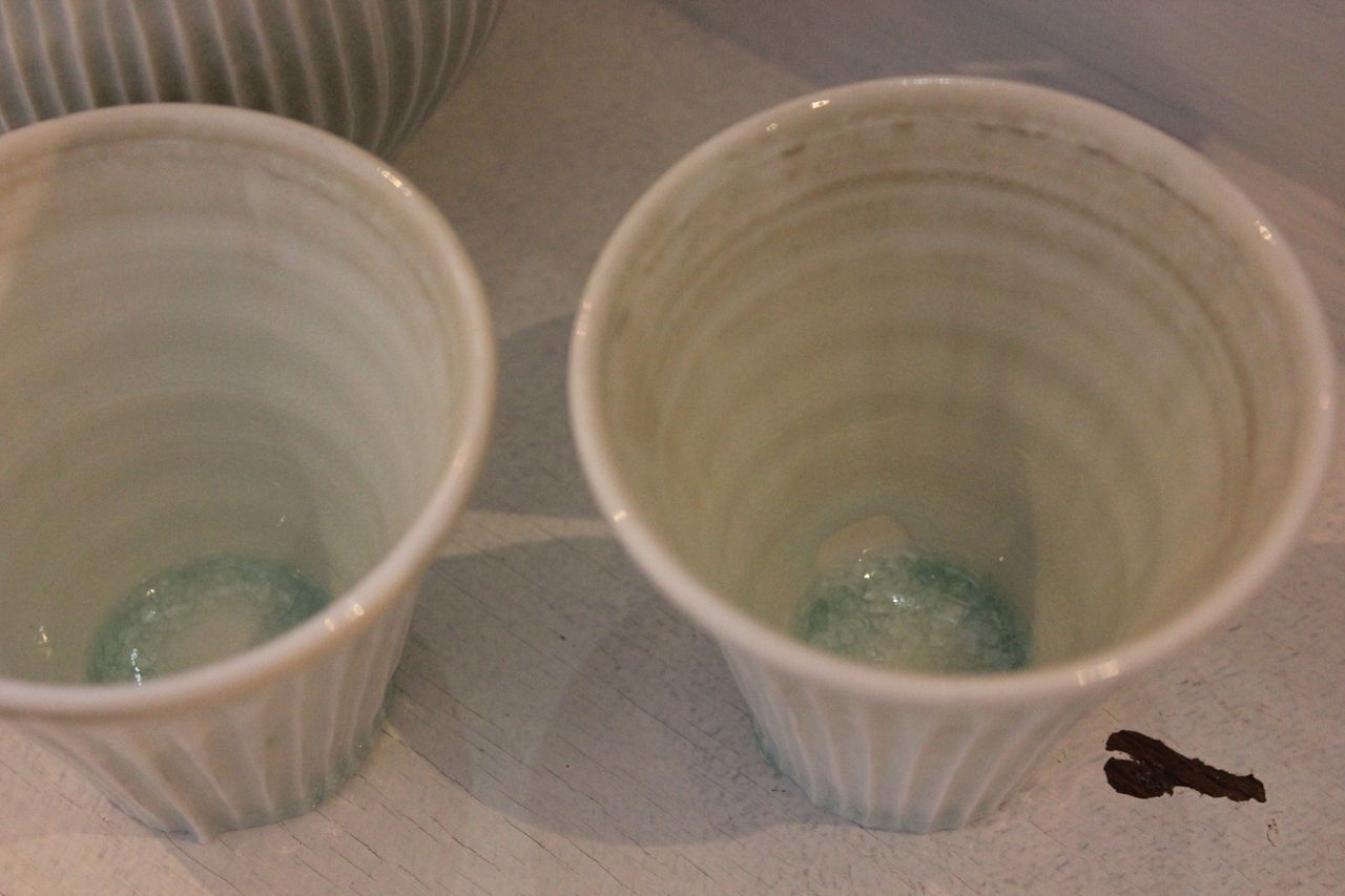 少し汚した表現、それにビードロの透明感、粉引をかける表現方法。