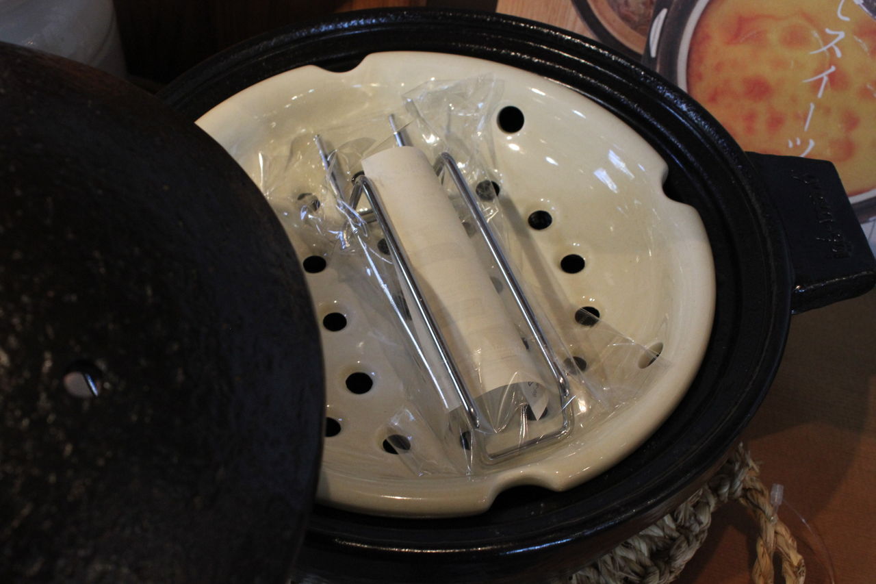 機能土鍋の人気者です。磁器製のすのこが付いていて蒸し料理もこなします。