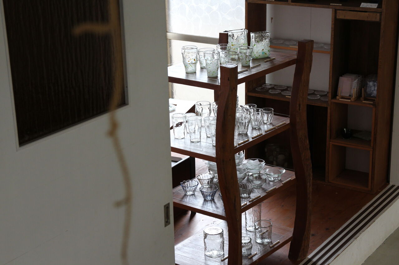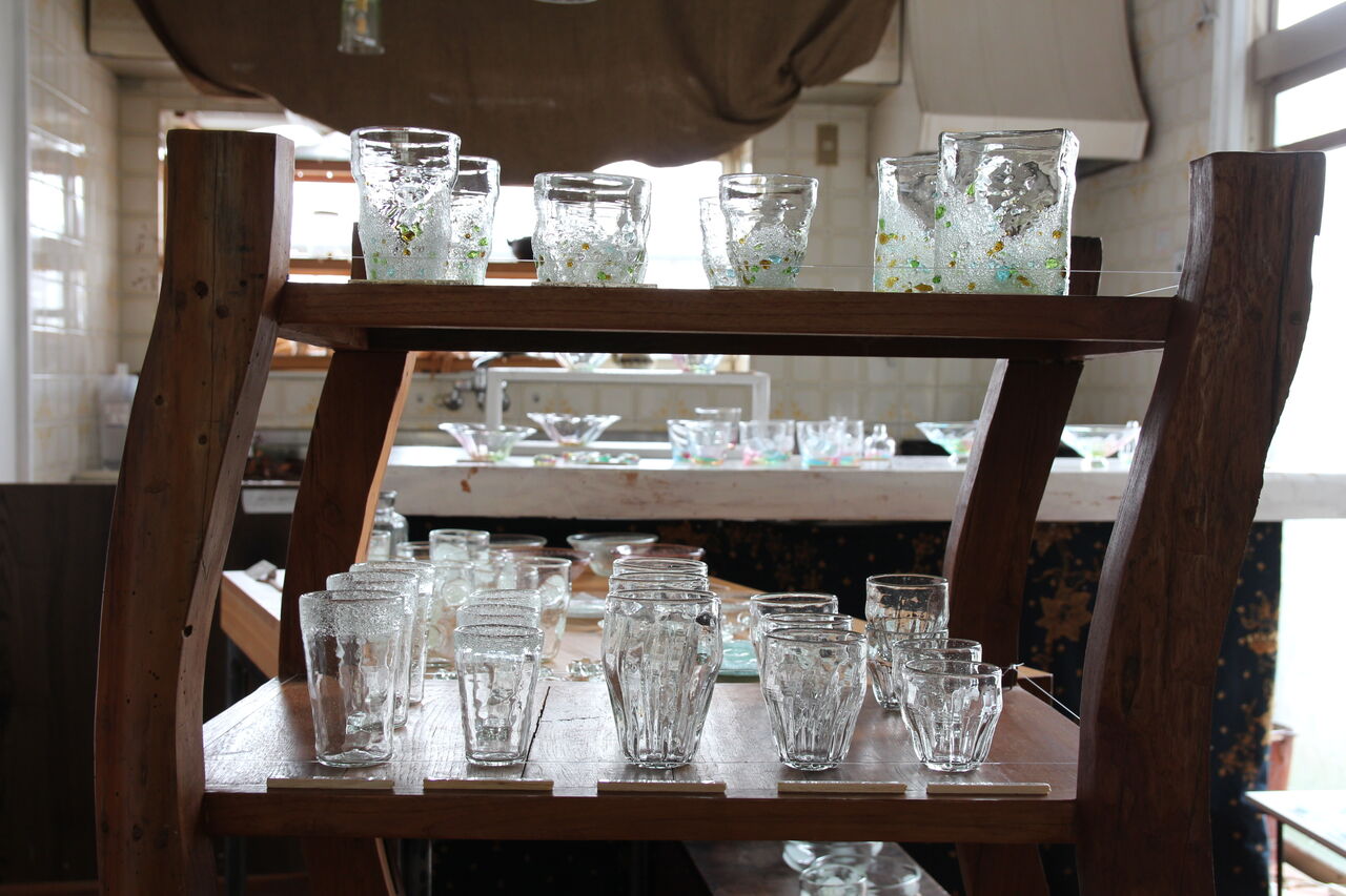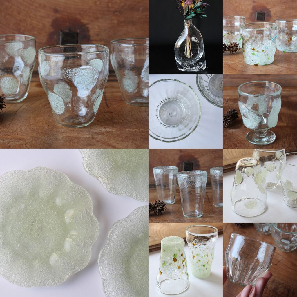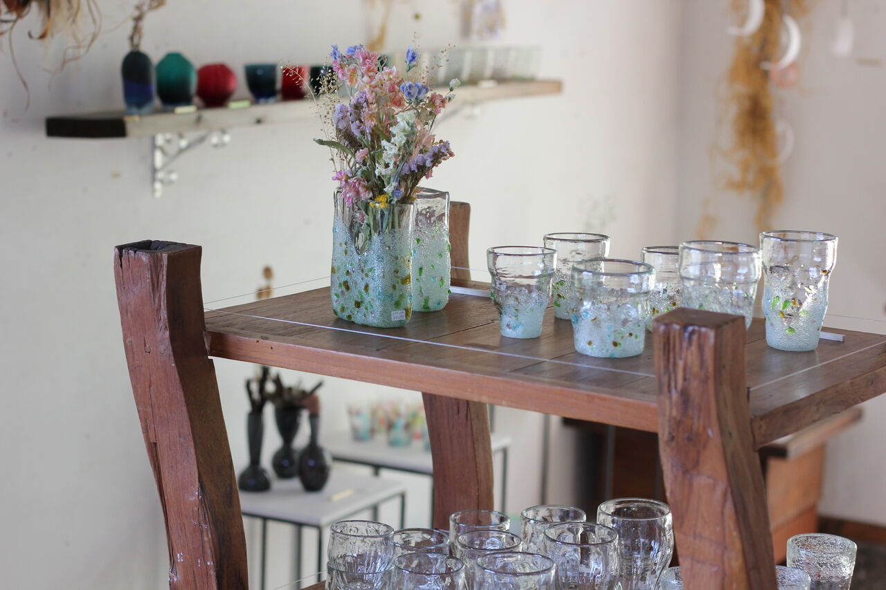 その原料となるイ草の切れ端などを有効活用すべく産まれたこちらのガラス。