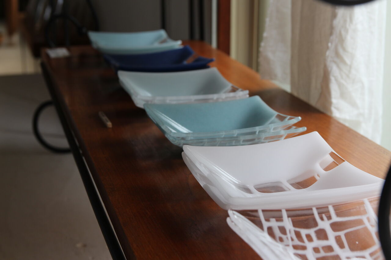 熊本の夏にふさわしい爽やかな企画展です。今年は11名の皆様にご参加いただいております。透明のガラスという素材を七変化させるガラス作家の魔法。まさにお料理のようです。確かな腕を持つ作家たちが、様々な技法に各々のセンスというスパイスを加えた美しい世界には驚きと感動を覚えます。今年も美しく涼感あふれる展示になりそうです。毎年恒例「うつわ屋のガラスはじめ」の本展。期間も長めに設定しております。どうぞ足をお運びください。