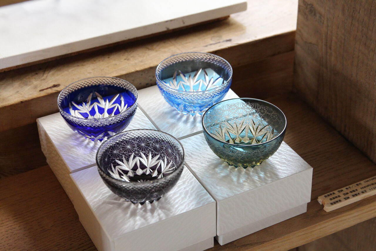 シャープな切子という技法を用いつつも、なんだかほんわか柔らかい光も感じる作風です✨
